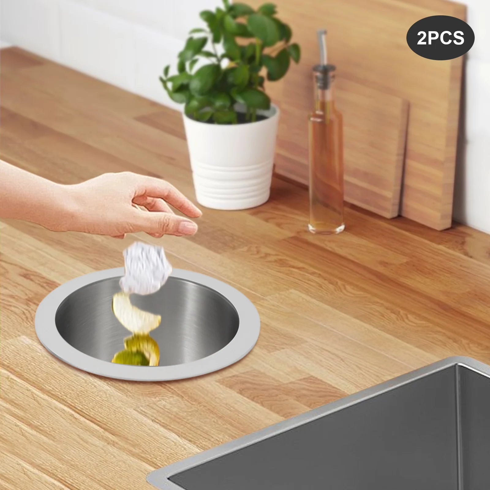 Maintain a clean, modern workspace with these high-quality stainless steel trash grommets. Designed for drop-in installation on kitchen counters, food prep tables, or commercial surfaces, they offer both functionality and sleek style. Crafted from durable 304 stainless steel with a brushed finish, these grommets are resistant to rust, easy to clean, and built for long-term use.